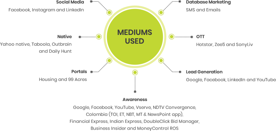 • Awareness – Google, Facebook, YouTube, Vserve, NDTV Convergence, Colombia (TOI, ET, NBT, MT & NewsPoint app), Financial Express, Indian Express, DoubleClick Bid Manager, Business Insider and MoneyControl ROS